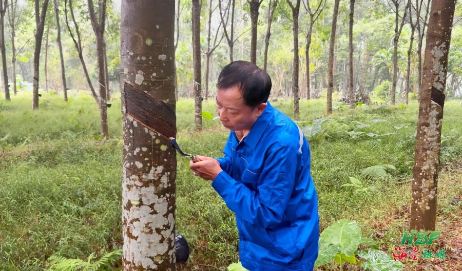 “電動割膠刀最大的好處是標準化?!秉S建安指著電動割膠刀刀頭上的傳感器說,“它能自動識別樹皮厚度,調(diào)整切割深度。新手膠工更容易上手,比傳統(tǒng)膠刀更省時間?!?
