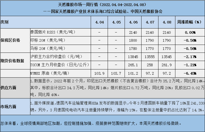 天然橡膠、大豆、玉米市場一周行情(2022.04.04-04.08)