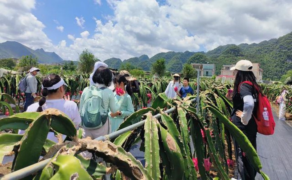 基地負(fù)責(zé)人何長(zhǎng)富介紹:“我們公司在萬(wàn)峰林雙生村種植有火龍果、沃柑、果凍橙,總計(jì)100畝,其中火龍果占地65畝。因?yàn)檫@邊景區(qū)游客比較多,周末接納人次在300人左右,2024年總產(chǎn)量在20萬(wàn)斤左右,總產(chǎn)值在120萬(wàn)元?!?/span>