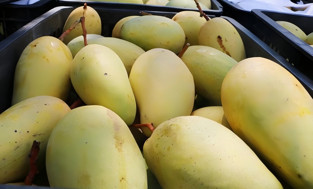 “這是我第二年過(guò)來(lái)收購(gòu)芒果,剛好我們這邊市場(chǎng)需要大臺(tái)芒,這個(gè)大臺(tái)芒品質(zhì)好,這里產(chǎn)量大概有4萬(wàn)斤左右,準(zhǔn)備拉到東莞銷(xiāo)售?!睆V西收購(gòu)商李壽山說(shuō)。