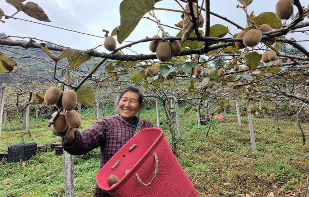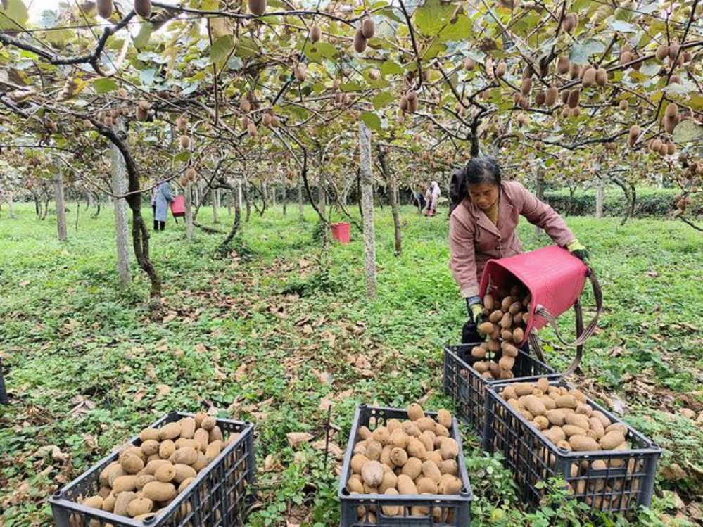 “果園的獼猴桃大豐收了,我們給老板摘獼猴桃,一天要摘1000多斤。”務(wù)工群眾唐順憲說(shuō)。
