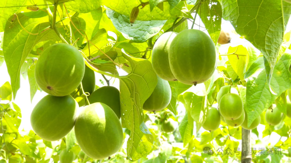 成片的棚架下,一個(gè)個(gè)飽滿翠綠的羅漢果掛滿藤蔓,密密麻麻,“豐”景盡顯。層層疊疊的葉片間,綴滿了青如碧玉的羅漢果,圓潤飽滿的果實(shí)輕輕晃動(dòng),呈現(xiàn)出一派豐收在望的喜人景象。