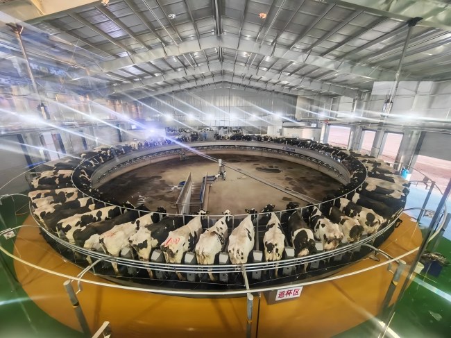 智能提效能,激活生產(chǎn)新引擎。擠奶廳內(nèi),智能化設(shè)備成為生產(chǎn)效能提升的“核心動力”。全新80位利拉伐重型擠奶轉(zhuǎn)盤穩(wěn)定運(yùn)轉(zhuǎn),搭載帝波羅智能識別系統(tǒng),0.3秒內(nèi)即可完成牛只身份核驗(yàn),同步采集擠奶速率、奶量等8項(xiàng)核心數(shù)據(jù)。得益于智能技術(shù)賦能,牛只識別率從30%躍升至90%,擠奶效率從432頭/小時提升至468頭/小時,生產(chǎn)效能實(shí)現(xiàn)質(zhì)的飛躍。每頭奶牛的成長軌跡、產(chǎn)奶數(shù)據(jù)均被完整記錄,形成詳盡養(yǎng)殖檔案,既為精細(xì)化管理提供數(shù)據(jù)支撐,也為后續(xù)產(chǎn)業(yè)升級筑牢基礎(chǔ)。