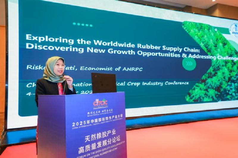 天然橡膠生產(chǎn)國聯(lián)合會(ANRPC)秘書處Riska Pujiati分享了天然橡膠生產(chǎn)國聯(lián)合會在促進產(chǎn)業(yè)國際合作、 強化信息交流共享、建立風險應對機制等方面的經(jīng)驗做法,分析了全球天然橡膠行業(yè)機遇與挑戰(zhàn),邀請更多主產(chǎn)國在國際舞臺上聚集產(chǎn)業(yè)能量。