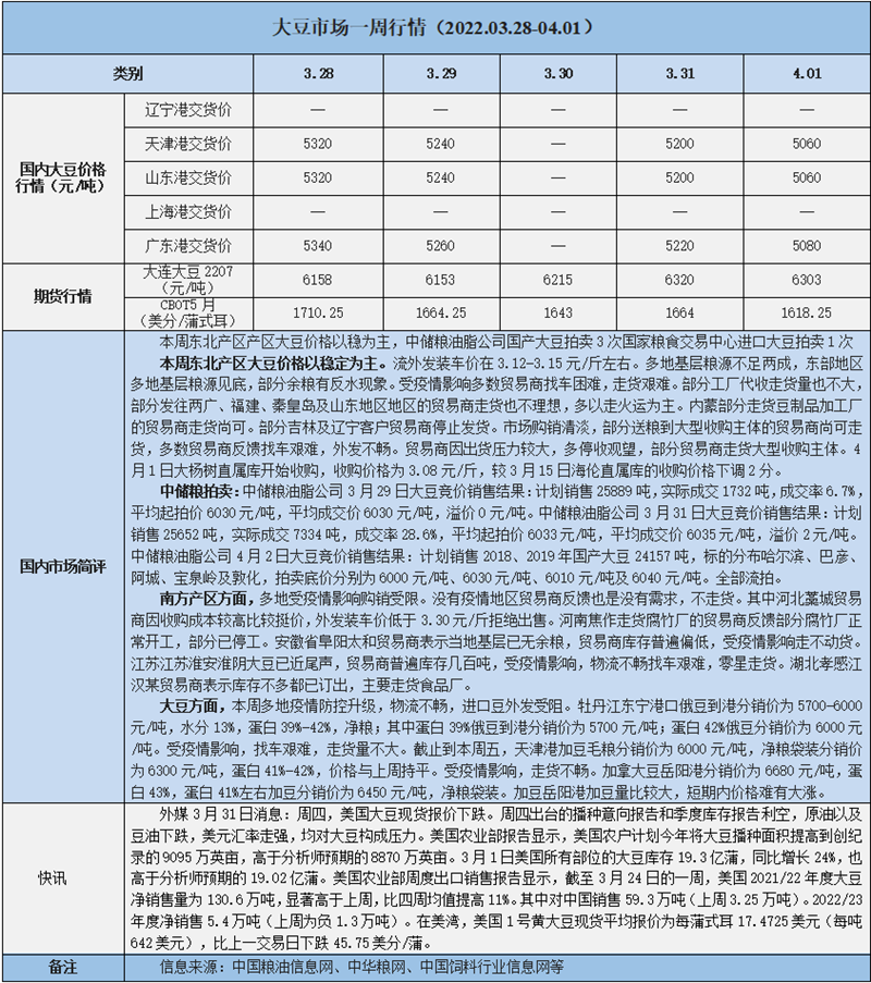 天然橡膠、大豆、玉米市場(chǎng)一周行情(2022.03.28-04.01)