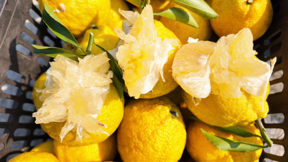 果園占地45畝,內(nèi)植1000株小樹與3000株大樹。小樹單株掛果3至10斤,果實圓潤飽滿;大樹則碩果累累,單株結(jié)果可達50至60斤,盡顯豐產(chǎn)之姿。得益于當(dāng)?shù)氐锰飒毢竦淖匀粭l件與科學(xué)精細的管護,此地產(chǎn)出的黃金貢柚果大皮薄、果肉晶瑩剔透,一口咬下,清甜多汁、脆嫩爽口,且富含維生素C,實為冬日養(yǎng)生之佳品。值得一提的是,果子采摘后放置七天回糖,口感會愈發(fā)清甜。