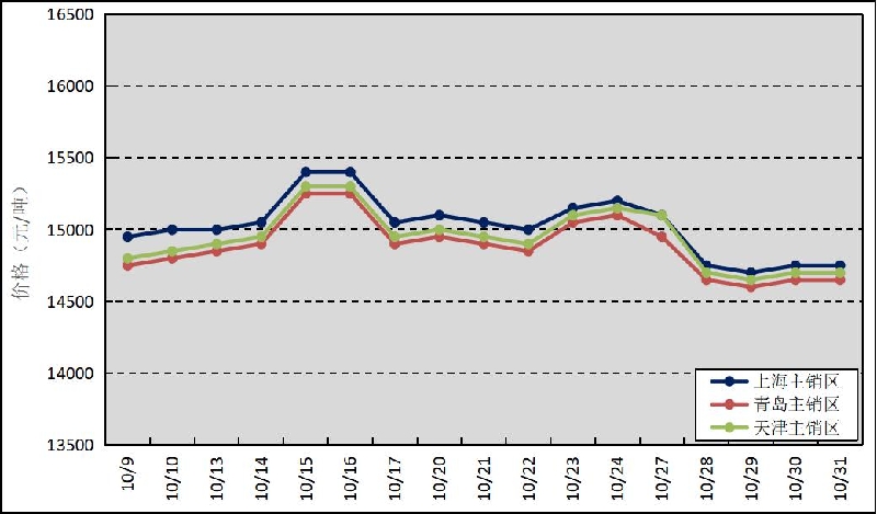 圖3 2025年10月國內(nèi)主銷區(qū)天然橡膠價格走勢
