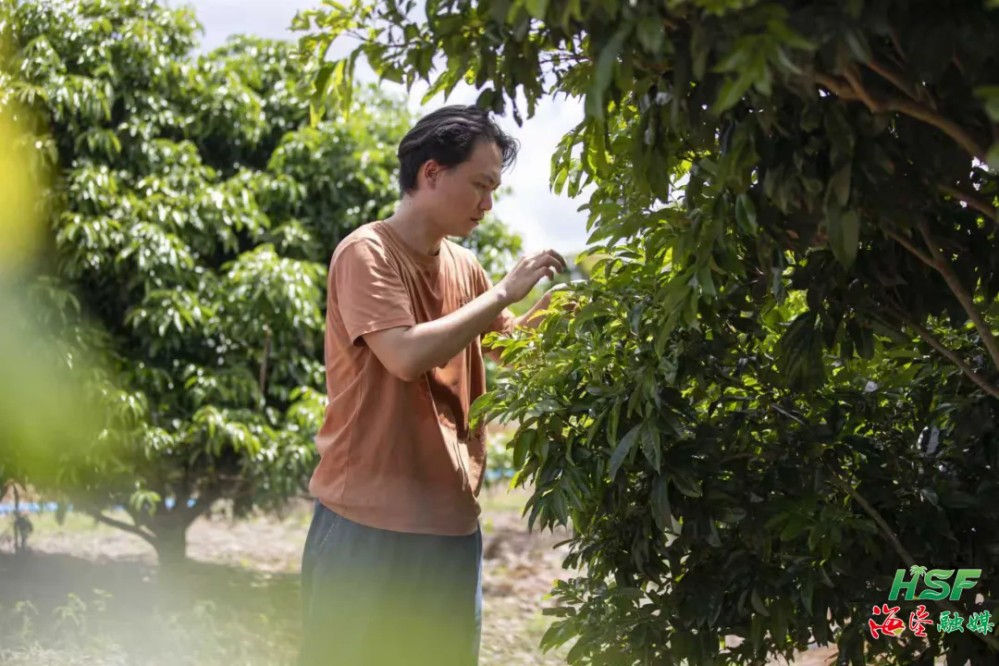 紅明農(nóng)場公司旗下海南荔海實業(yè)有限公司副總經(jīng)理李精華拿著手機和筆記本來到這里,一一觀察每株荔枝樹,記錄它們的生長情況。