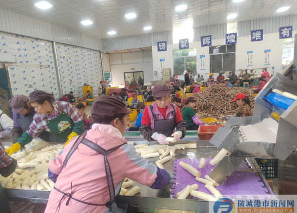 近日,在防城港市防城區(qū)大菉鎮(zhèn)喜農(nóng)人種養(yǎng)專業(yè)合作社(以下簡稱喜農(nóng)人合作社)“華南9號(hào)”黃心木薯加工廠現(xiàn)場(chǎng),工人們正熟練地操作手中的工具將木薯剝皮、取芯,清理后的木薯被傳送帶送入機(jī)器內(nèi)清洗,再由工人真空打包后送往冷凍庫冷藏,現(xiàn)場(chǎng)一派繁忙景象。