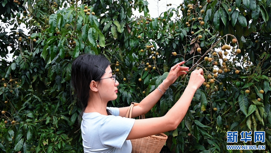 采摘龍眼(8月13日攝)。新華網(wǎng)發(fā)(茶新慧 攝)
