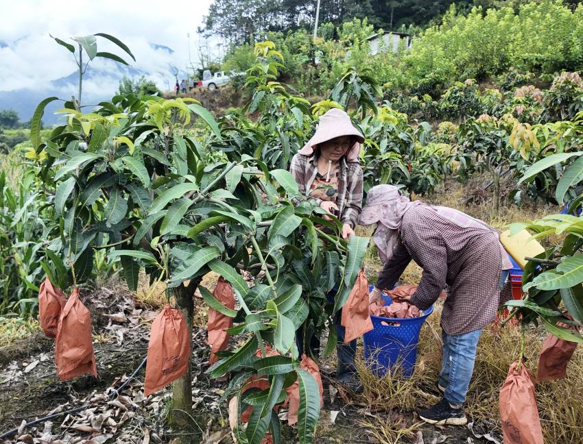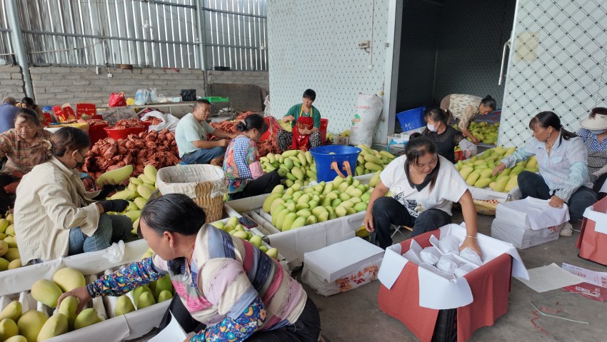 村民們正在將采摘的芒果裝箱。毛輝攝