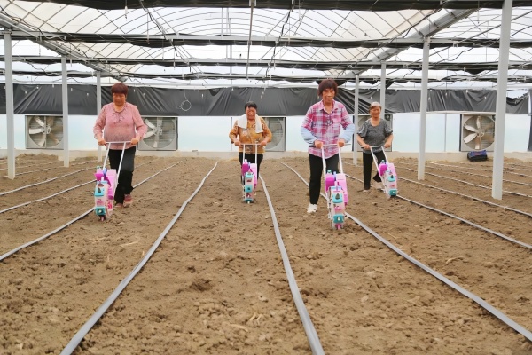 走進(jìn)大棚,只見一臺(tái)臺(tái)小巧靈活的播種機(jī)在工作人員的操控下穿梭于田間。紅色醒目的播輪在地上行走自如,發(fā)出陣陣歡快的聲響,將一粒粒黑豆種下。這臺(tái)機(jī)器以其輕便快捷的特點(diǎn),大大提高了播種效率。“它不僅能夠?qū)崿F(xiàn)精準(zhǔn)播種,確保每顆豆子都能以相同的間距和深度植入土壤,還為后續(xù)的統(tǒng)一管護(hù)提供了極大的便利?!痹诂F(xiàn)場(chǎng),技術(shù)員鄒品才介紹。