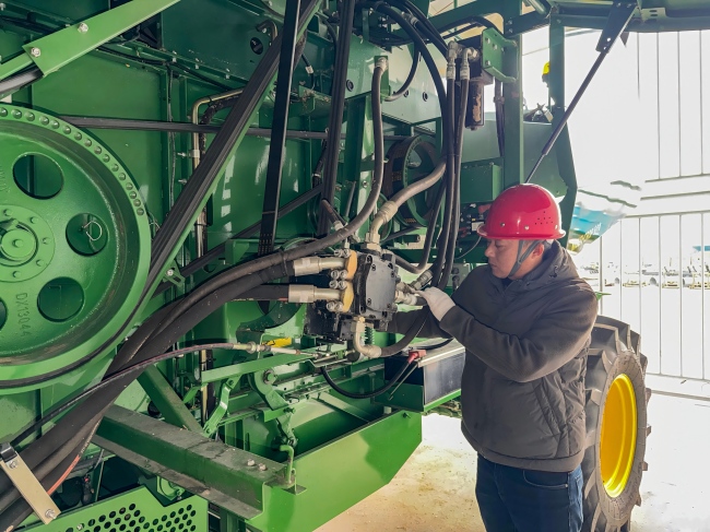 “農(nóng)機是農(nóng)業(yè)生產(chǎn)的‘鐵疙瘩’,更是春耕搶種的‘主力軍’。冬季保養(yǎng)做扎實,來年春耕才能拉得出、用得上、效率高,這是保障糧食豐產(chǎn)豐收的關(guān)鍵前提?!睎|辛分公司農(nóng)機管理負責人呂建平表示。此次專項維保嚴格遵循“預防為主、養(yǎng)修并重”原則,提前制定詳細實施方案,層層壓實管護責任。保障中心統(tǒng)籌協(xié)調(diào)各生產(chǎn)區(qū)農(nóng)機負責人,開展“全覆蓋、無死角”檢修維護,確保不漏一臺設(shè)備、不留一處隱患。在做好內(nèi)部檢修的同時,工作人員還對農(nóng)機進行全面外部清潔,徹底清除機身附著的泥土、秸稈等雜物,精準落實防銹防腐處理,全方位提升農(nóng)機“健康指數(shù)”。