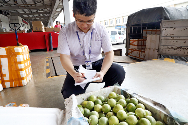 工作人員正在對(duì)百香果開(kāi)箱檢查。黃求玉攝